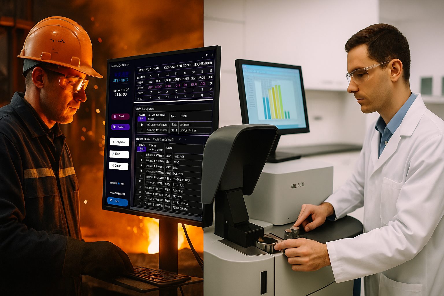 SparkConnect displays lab analysis results in real time in the production area. Furnace operators or supervisors no longer need to wait for files or printed reports to verify composition accuracy. Information appears instantly in the control room, complete with out-of-spec notifications. This shortens the feedback loop and reduces melting errors or material waste.
