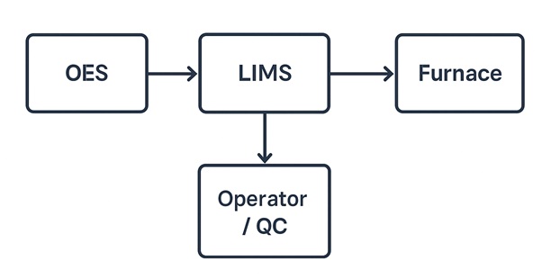 2. Gambaran Integrasi Ideal: OES -> LIMS -> Furnace -> Operator